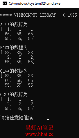 cout << "C2中的数据为:\n" << C2 << endl << endl;