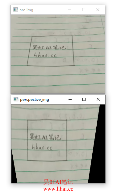 利用函数warpPerspective()作图像的透视变换前需要有一个3×3的透视变换矩阵,可以利用函数getPerspectiveTransform()得到3×3的透视变换矩阵。