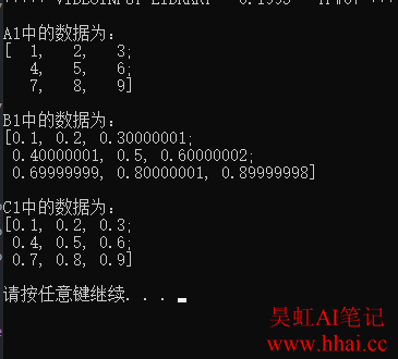 std::cout << "imag1的数据如下:\n" << image1 << std::endl << std::endl;