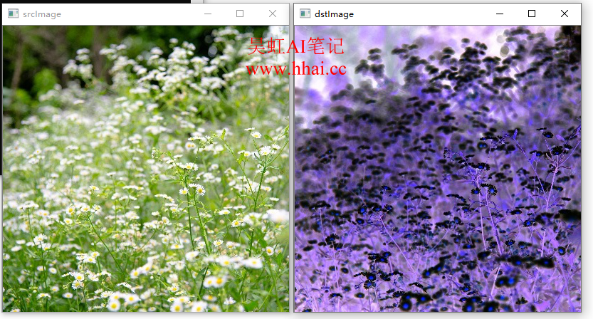我们通过遍历矩阵的元素,实现图像的反色处理,实际上就是用最大灰度值255减去元素值。