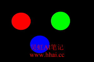 图像中的三个圆分别为纯红圆、纯绿圆和纯蓝圆。