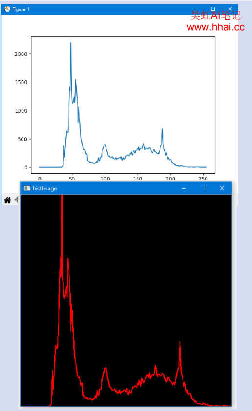 - hist1 = cv.calcHist([img], [0], None, [256], [0, 256])